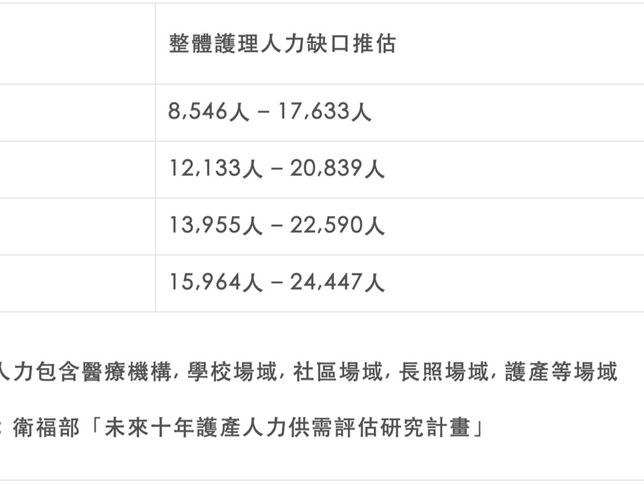台灣中華民國護理師護士公會全國聯合會2019年發布的報告指出,台灣護理人員一年以下的離職率高達20%,執業率未達60%,護病比仍高出歐美國家許多,部分原因為少子化、…